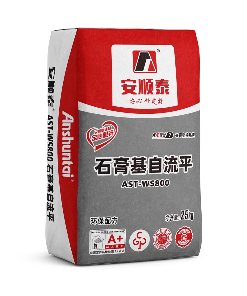 安顺泰AST-WS800石膏基自流平由优质脱硫石膏、进口添加剂等配制而成,专门用于室内地面找平层、地暖找平层(除卫生间)的材料。