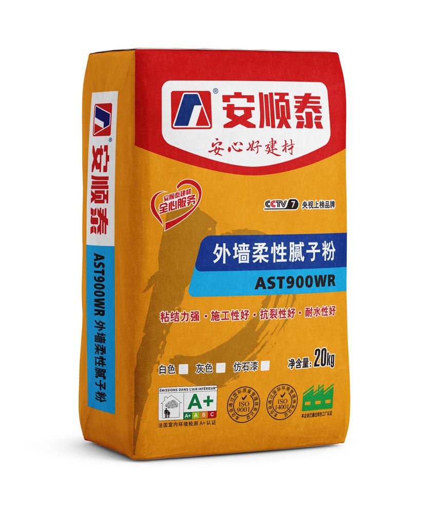 安顺泰外墙柔性腻子粉是聚合物干粉型,并具有一定柔性的水泥基腻子。由此制成的腻子,在基层龟裂后本身具有一定的韧性,能遮盖基层的裂纹,故可很好解决外墙开裂问题。